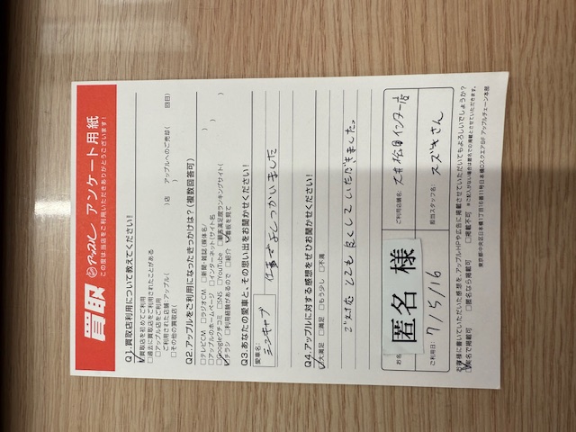 お車のご相談・ 査定だけでもOK! カンタン 入力 30秒 アップルがブランド買取始めました! お電話でも受付中! 受付時間10:00~18:00 0120-626-123 お車のご相談・ 査定だけでもOK! カンタン 入力 30秒 アップルがブランド買取始めました! お電話でも受付中! 受付時間10:00~18:00 0120-626-123 アップルがブランド買取始めました! お電話でも受付中! 受付時間10:00~18:00 0120-626-123 店舗情報 在庫車 スタッフ紹介 ブログ お客様の声 キャンペーン 無料査定 click お客様の声 ご記入日: 2025/05/16 K様 車名:三菱 ミニキャブバン Q4.アップルに対する感想を是非お聞かせください!ご対応とても良くしていただきました。 前へ 次へ お客様の声一覧を見る