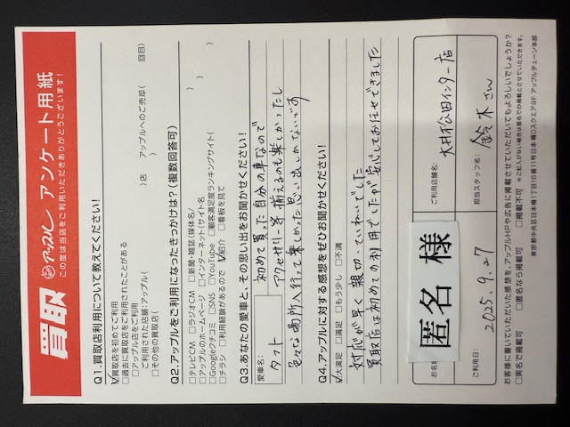 対応が早く親切、丁寧でした。買取り店は初めての利用でしたが、安心してお任せできました。