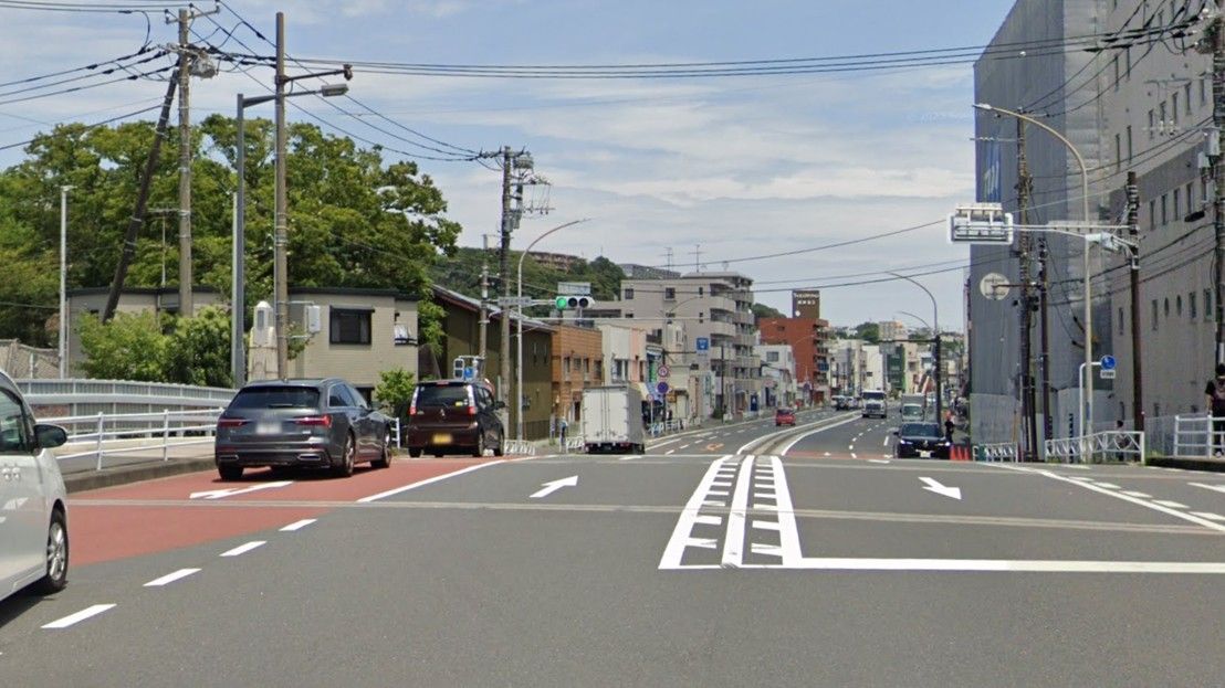 国道16号の磯子方面から【八幡橋】を渡って、【磯子区西町歩道橋】をすぎて、【根岸小学校入口】の交差点を右折、ローソン併設のガソリンスタンド内です。