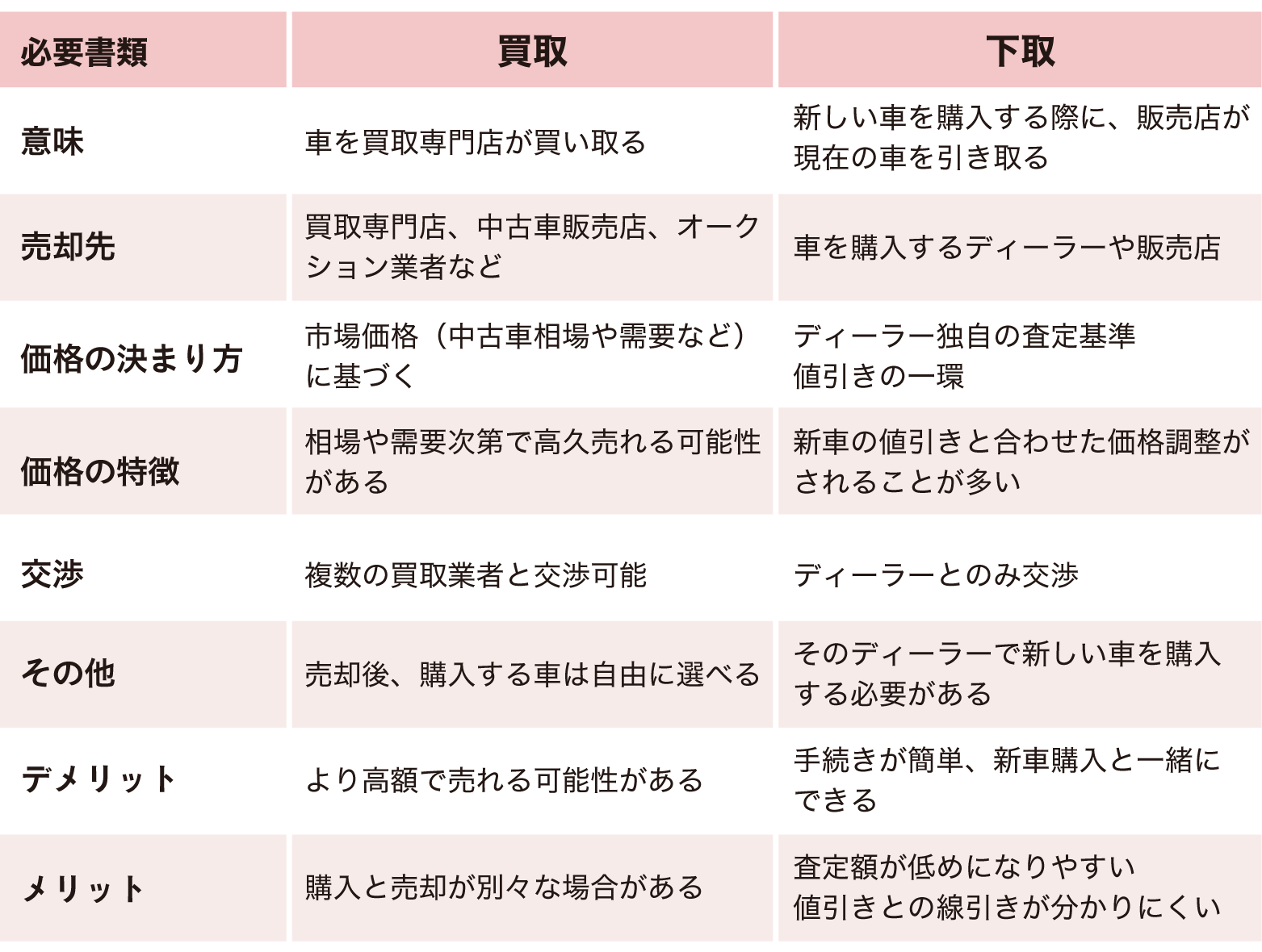 車の 「買取」 と 「下取」 の違いを簡単にまとめると、以下のようになります。